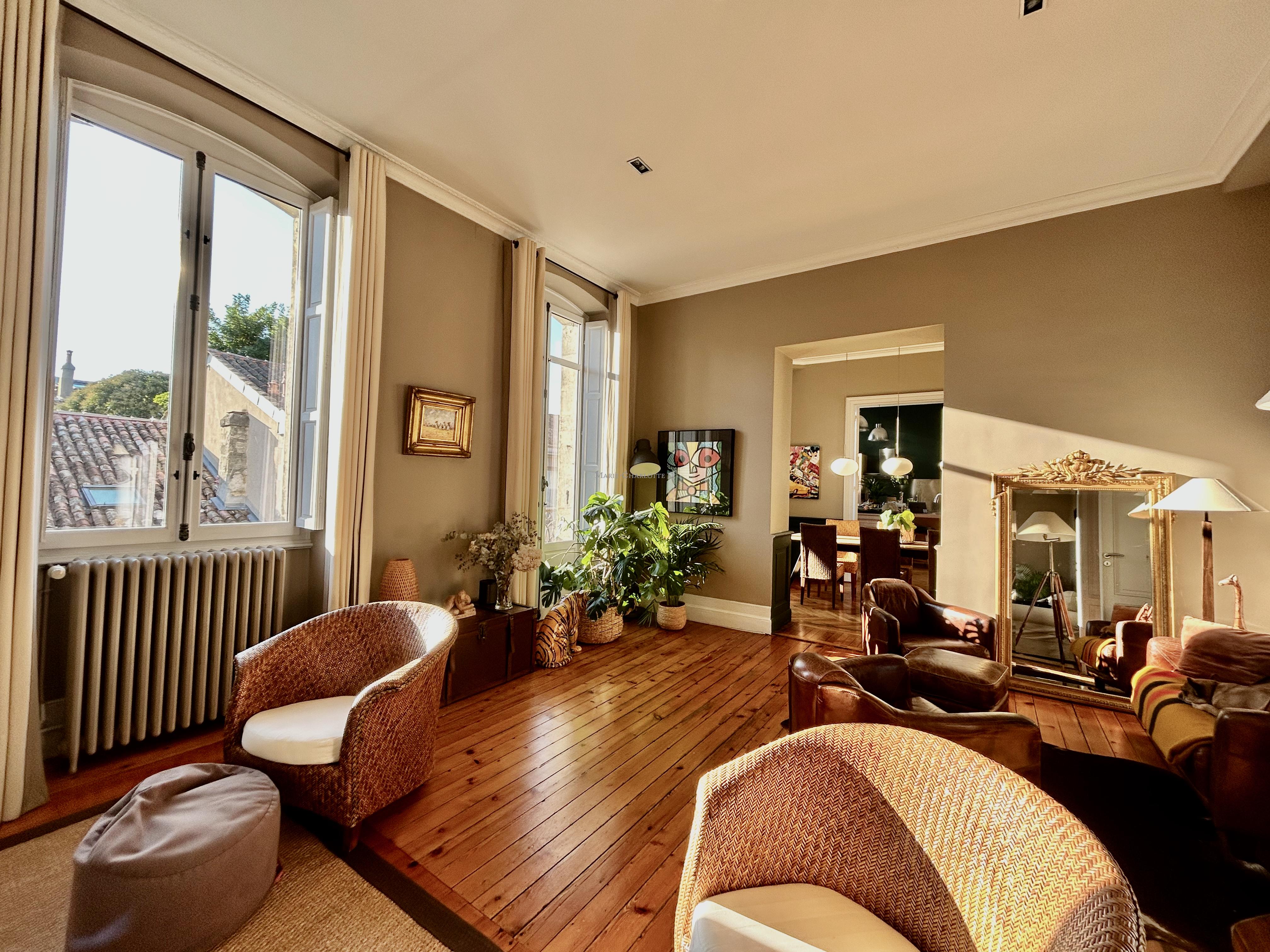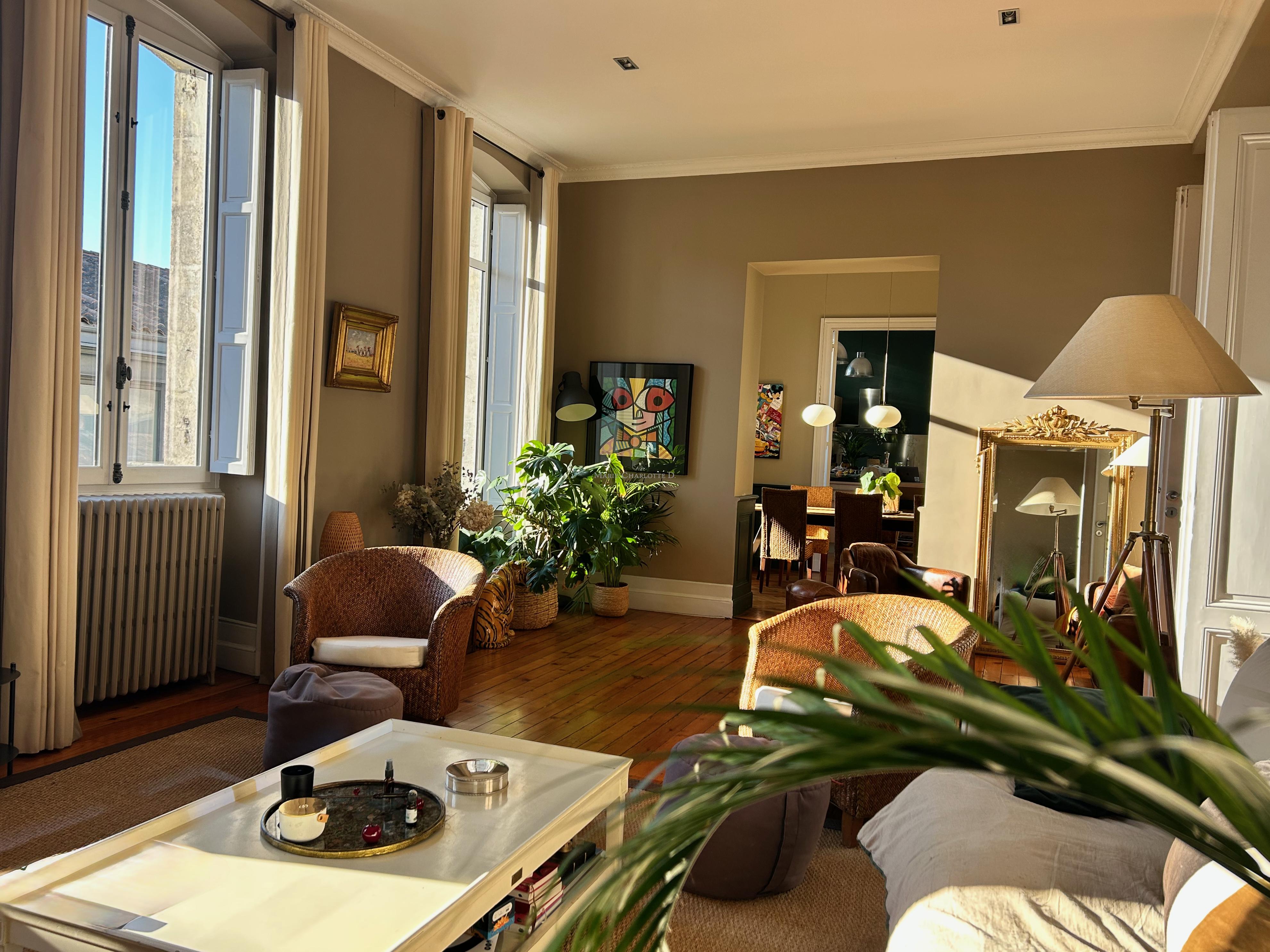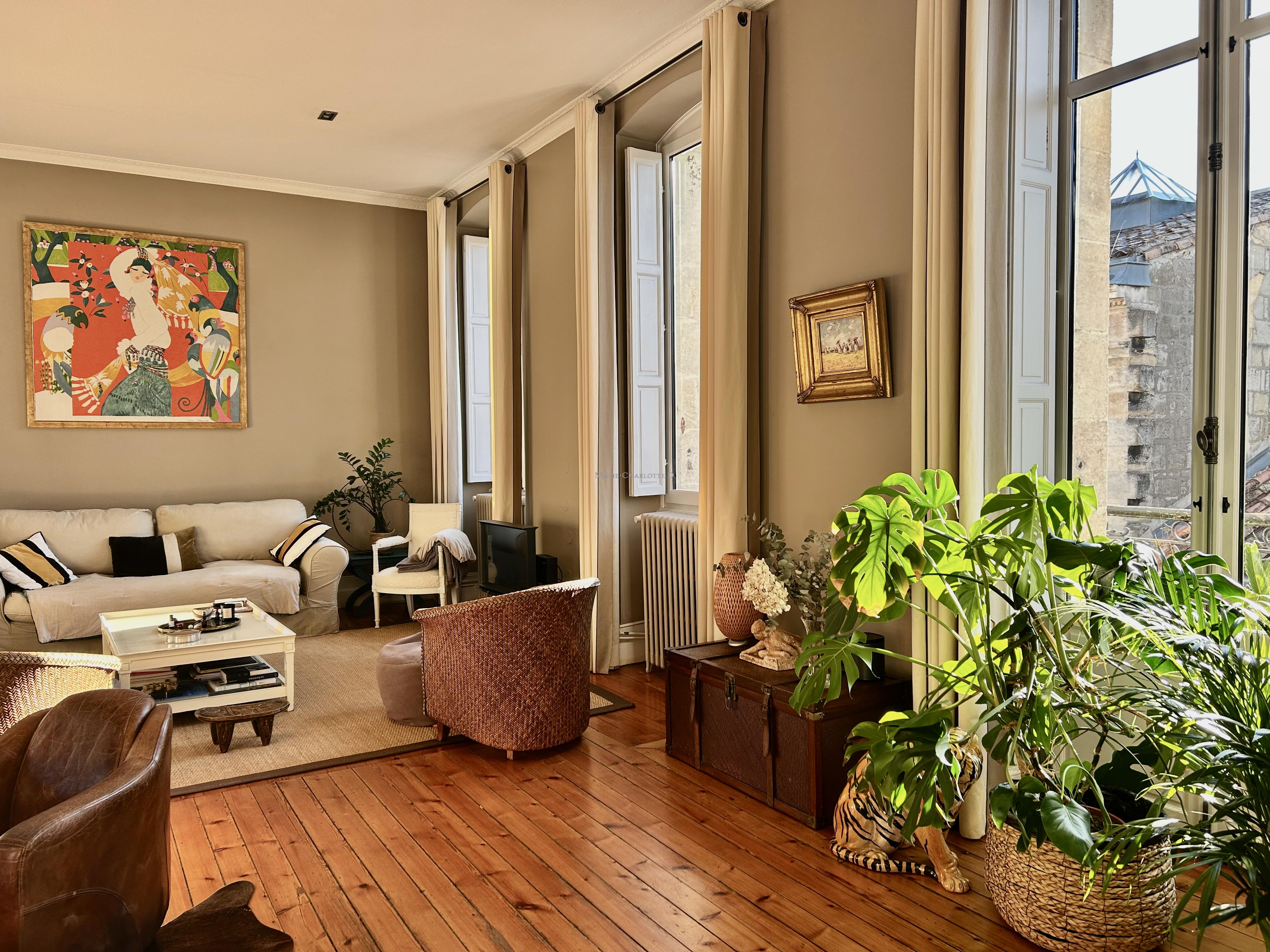 Idéalement situé à Bordeaux, dans le très recherché quartier du Jardin Public - Fondaudège, rue Francis Martin, ce superbe appartement en duplex se trouve au 2ᵉ et dernier étage d’un bel immeuble en pierre.