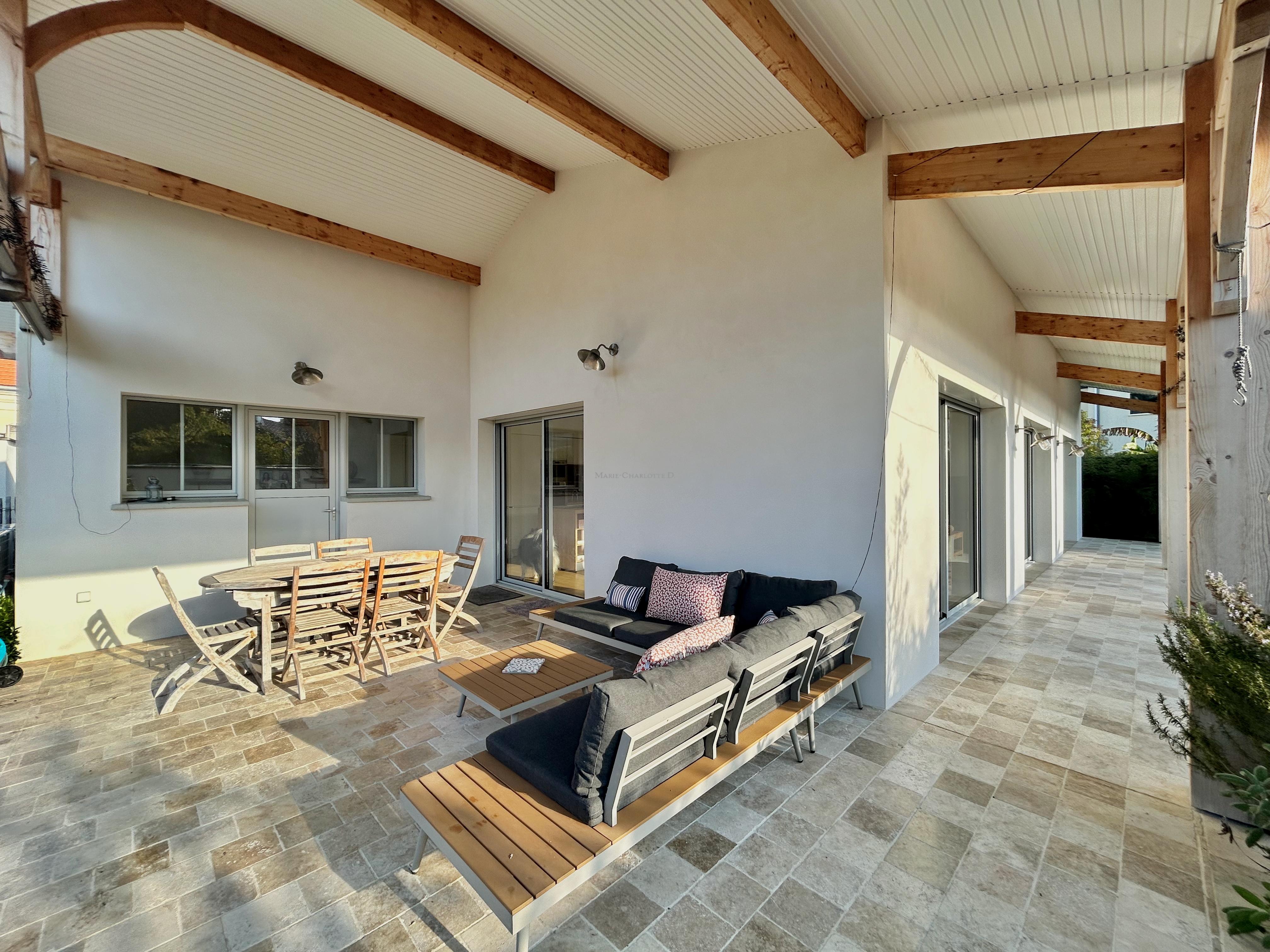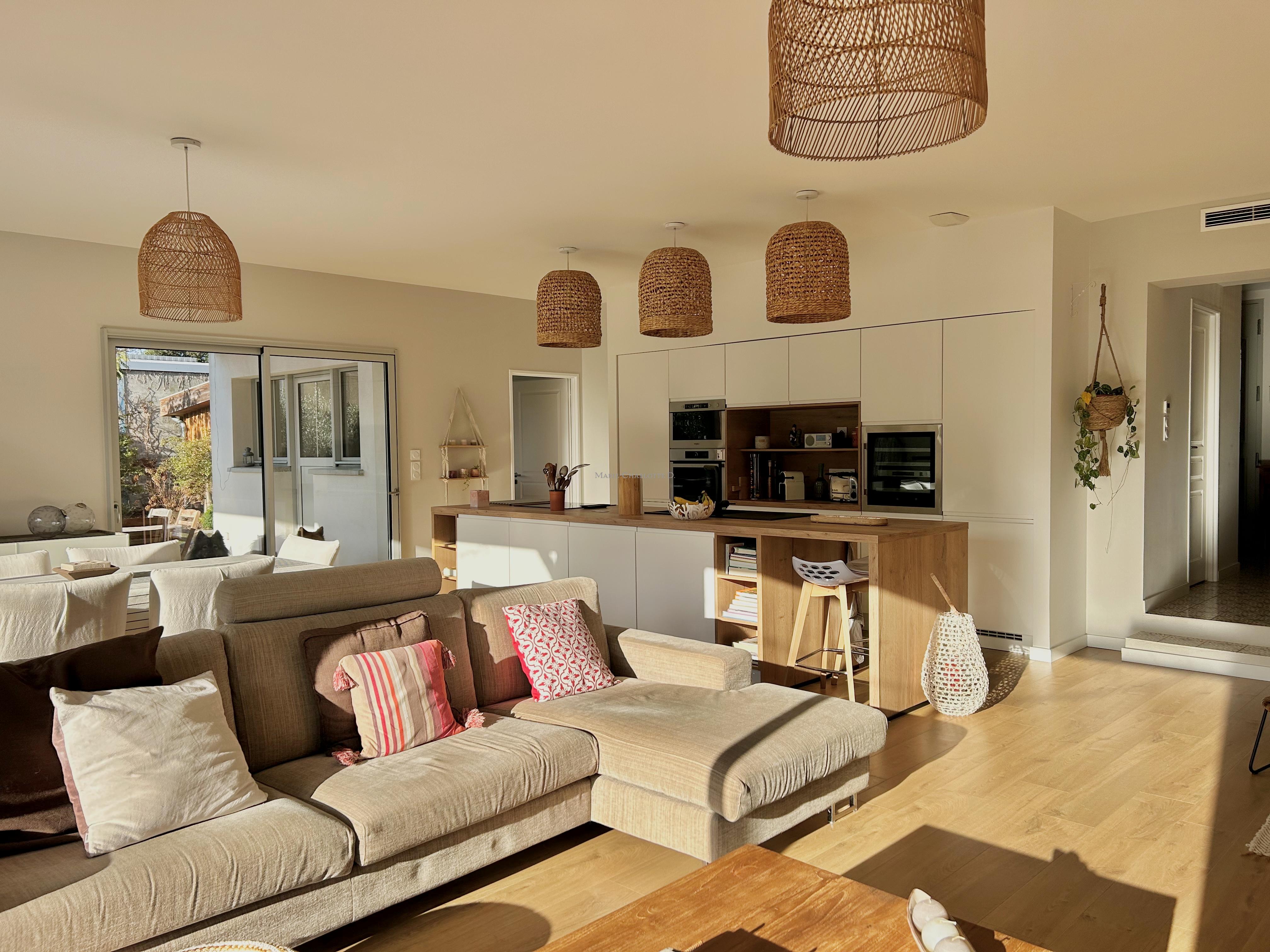 Développant une surface généreuse d’environ 185m², cette propriété familiale aux volumes harmonieux séduit par sa luminosité et la qualité de ses prestations.