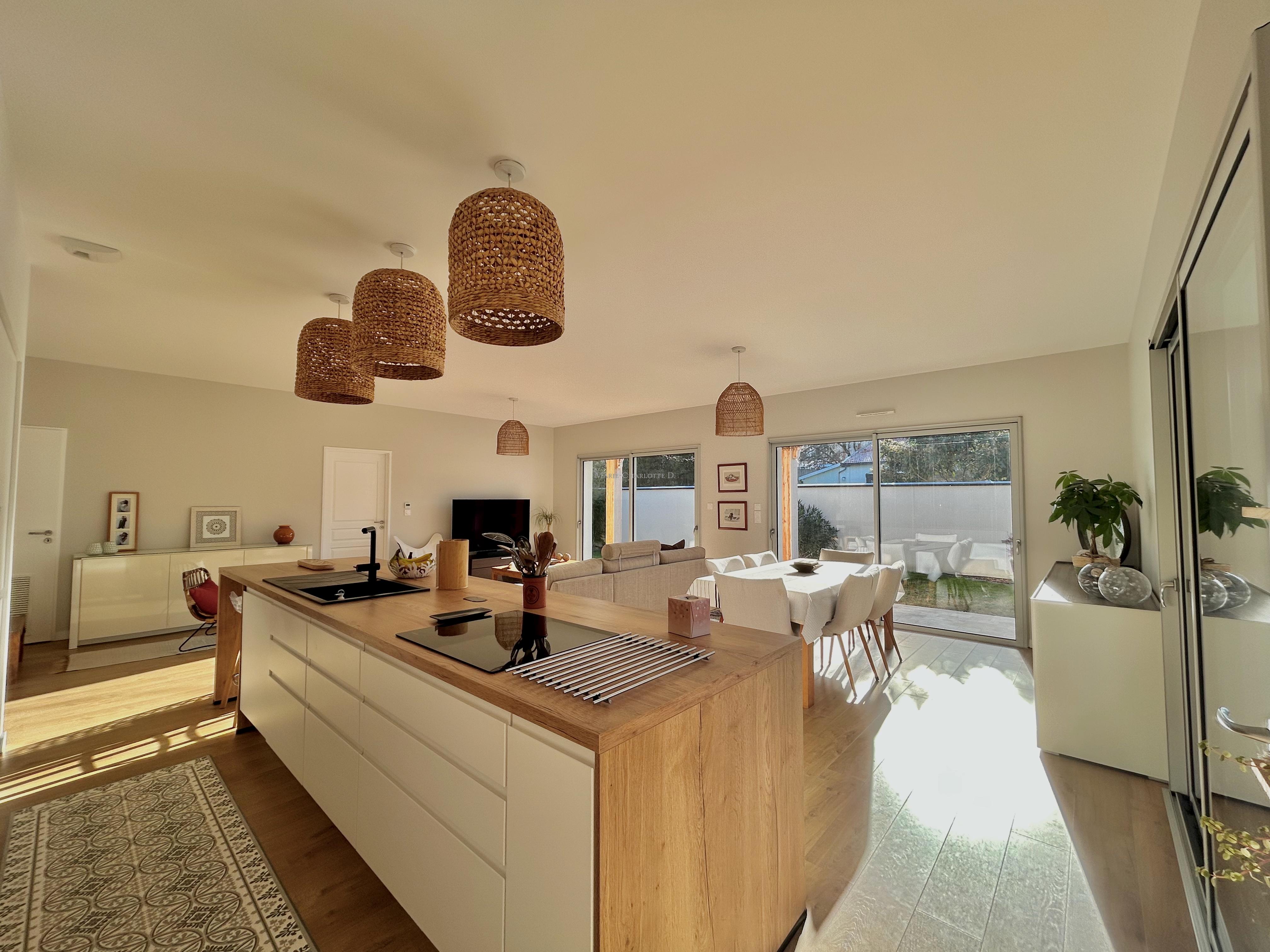 Pensée dans les moindres détails, la maison bénéficie de nombreux rangements sur mesure, d’une circulation fluide et d’un confort optimal en toute saison grâce à la climatisation réversible et au respect des dernières normes RT 2020.