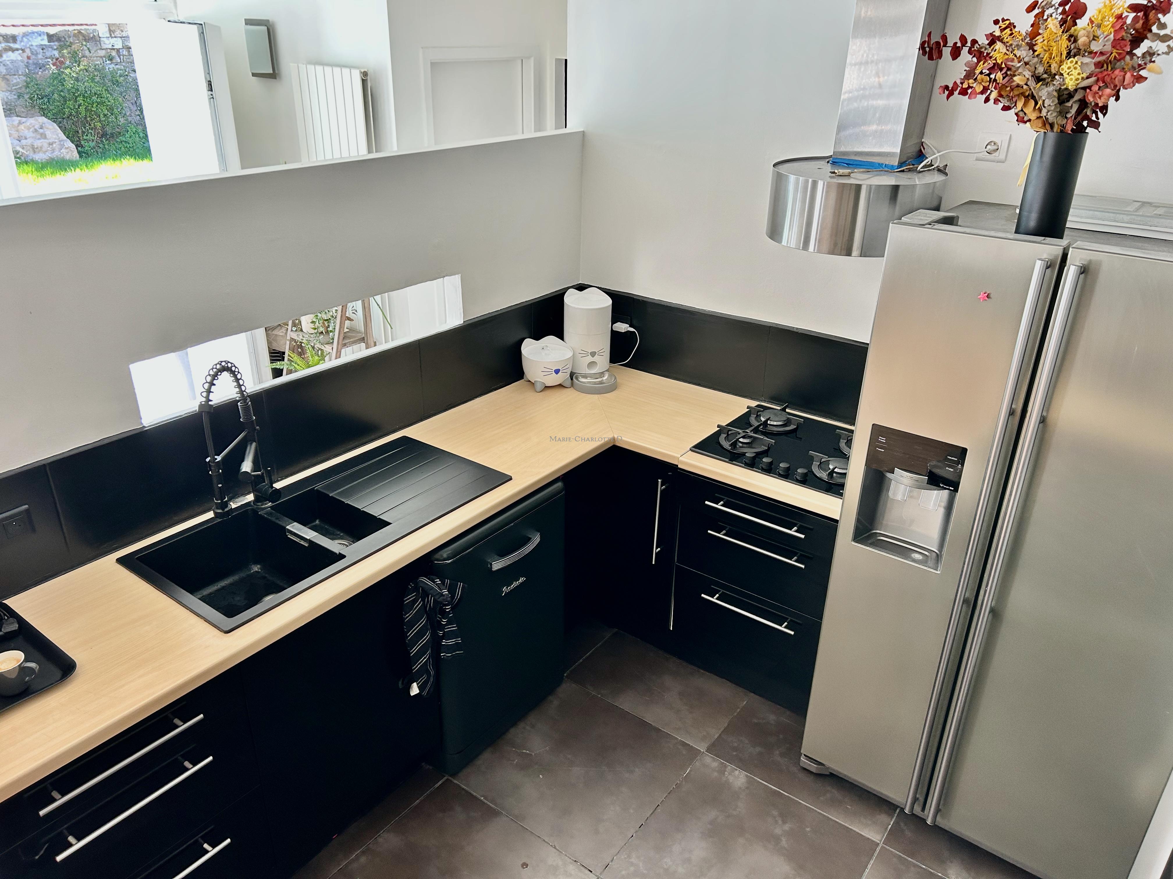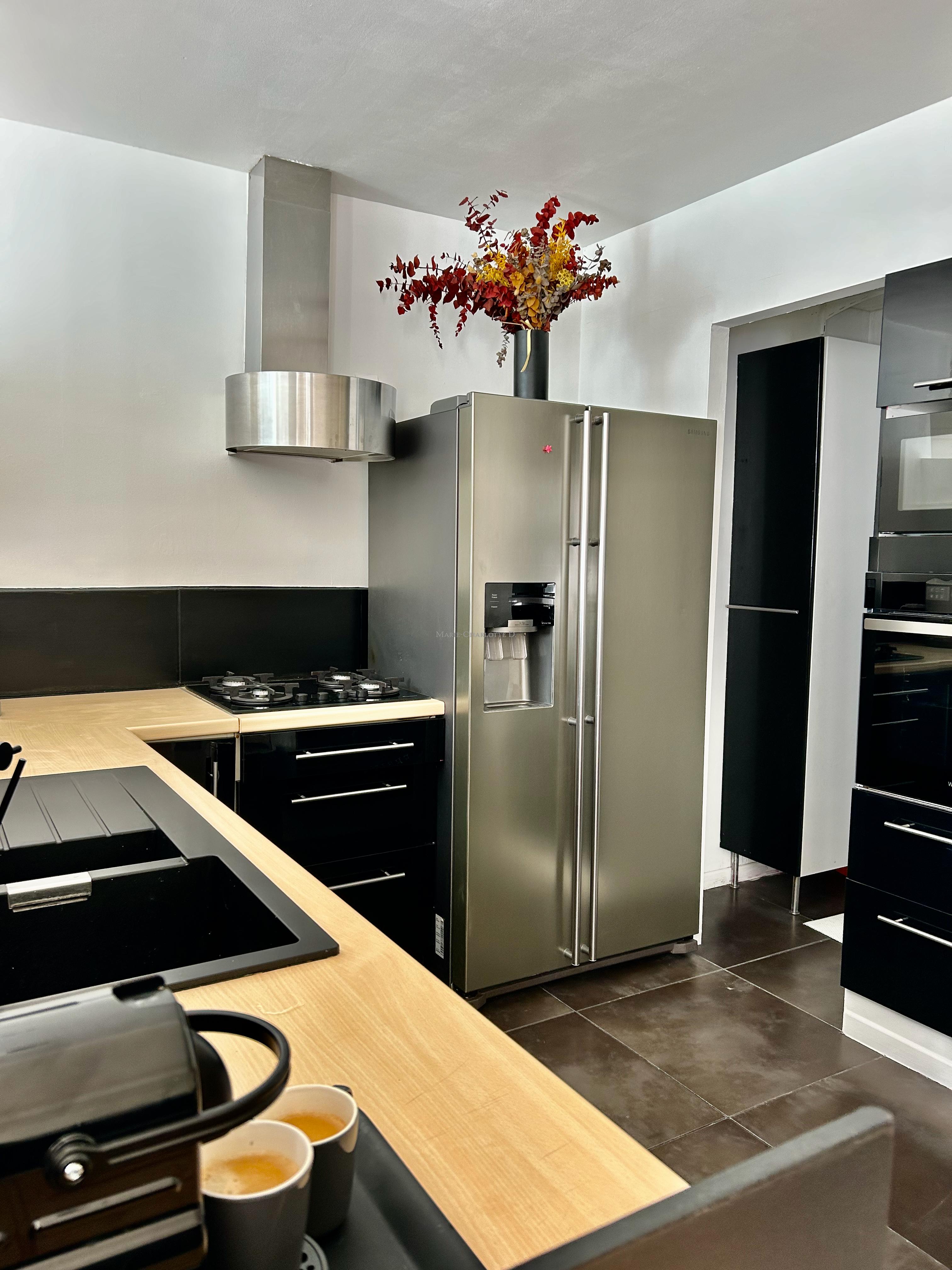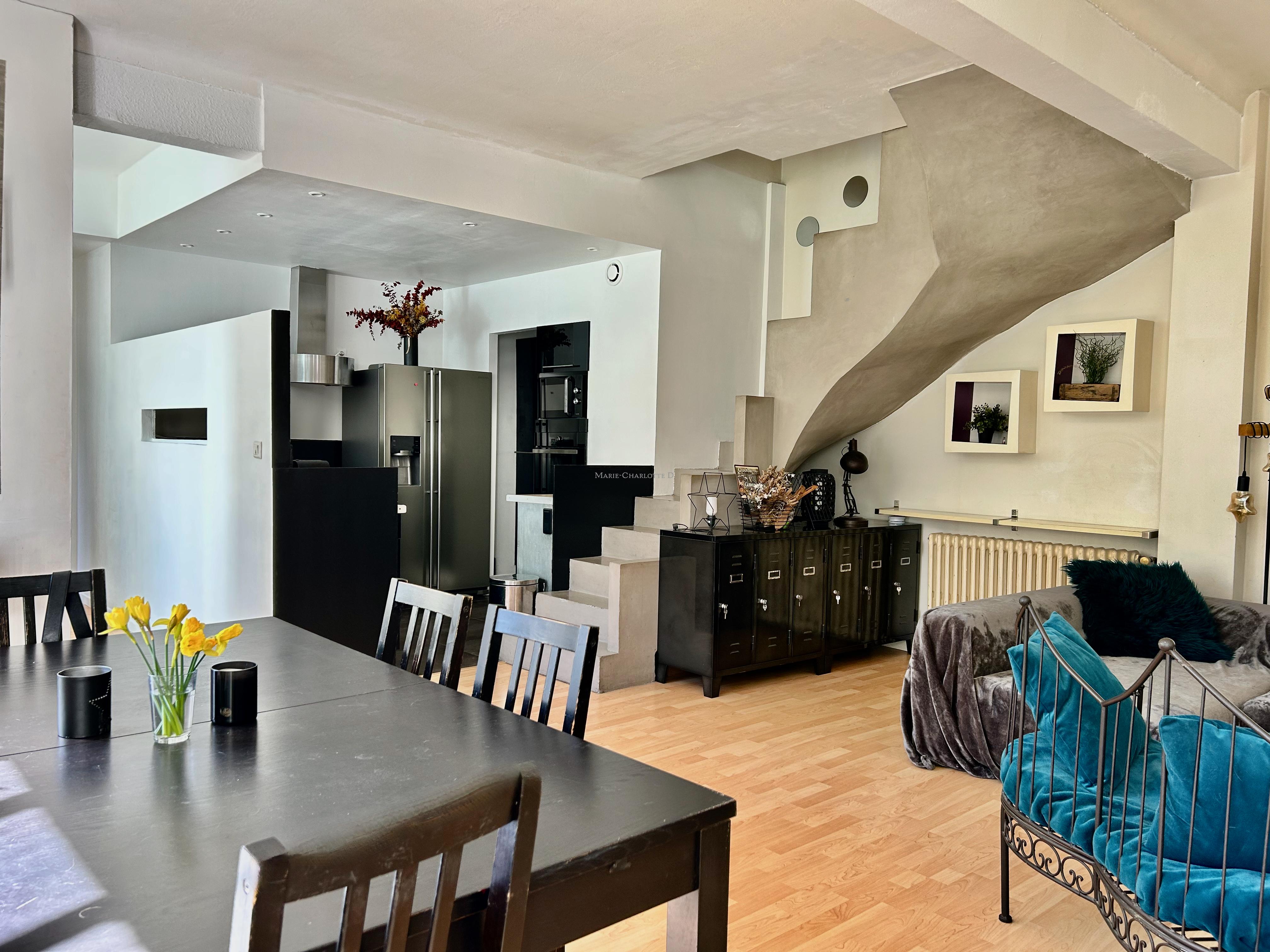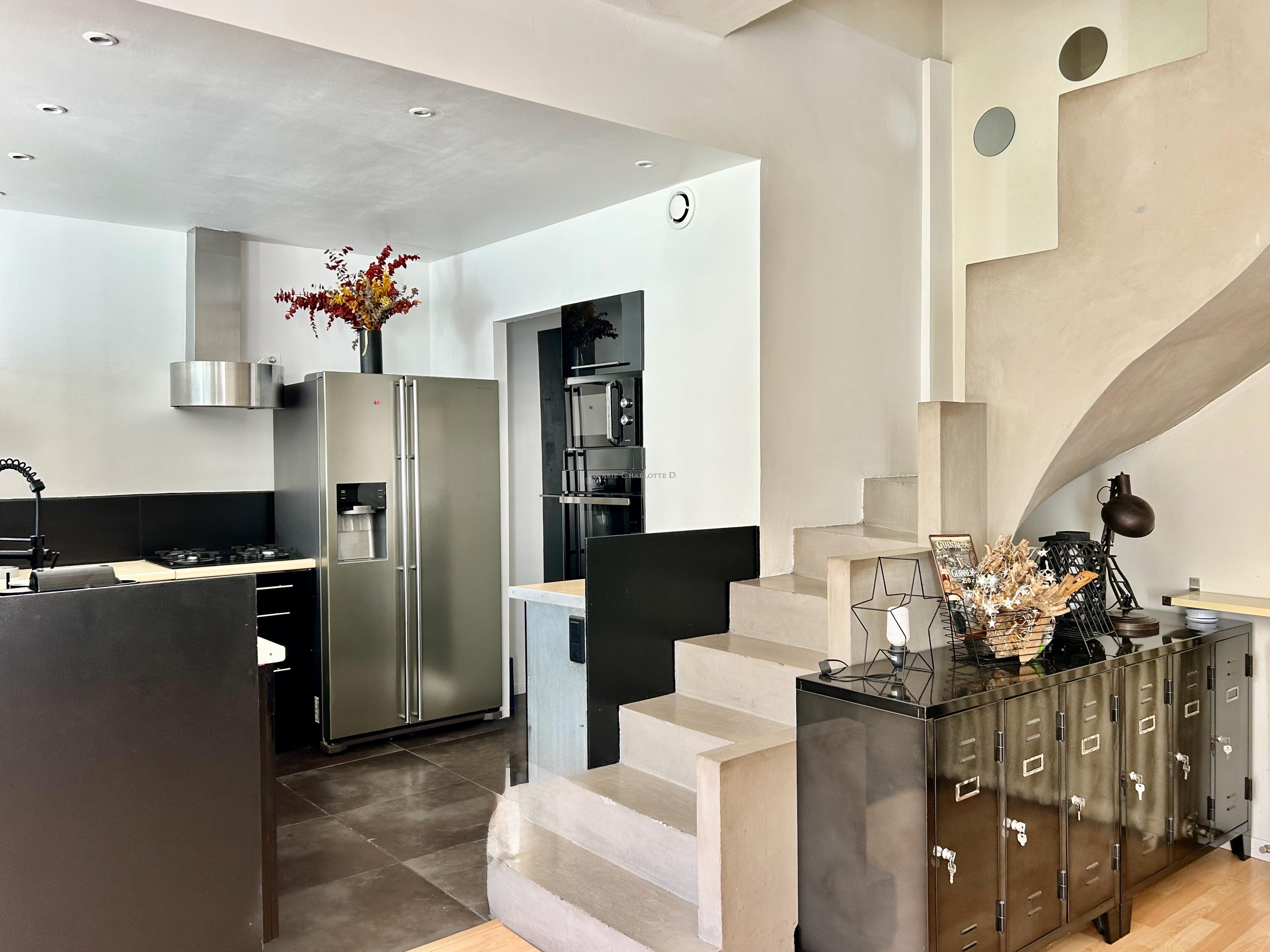 Le rez-de-chaussée s’ouvre sur une vaste pièce de vie conviviale avec une cuisine ouverte entièrement équipée, ainsi qu’une chambre avec une salle d’eau, idéale pour recevoir.