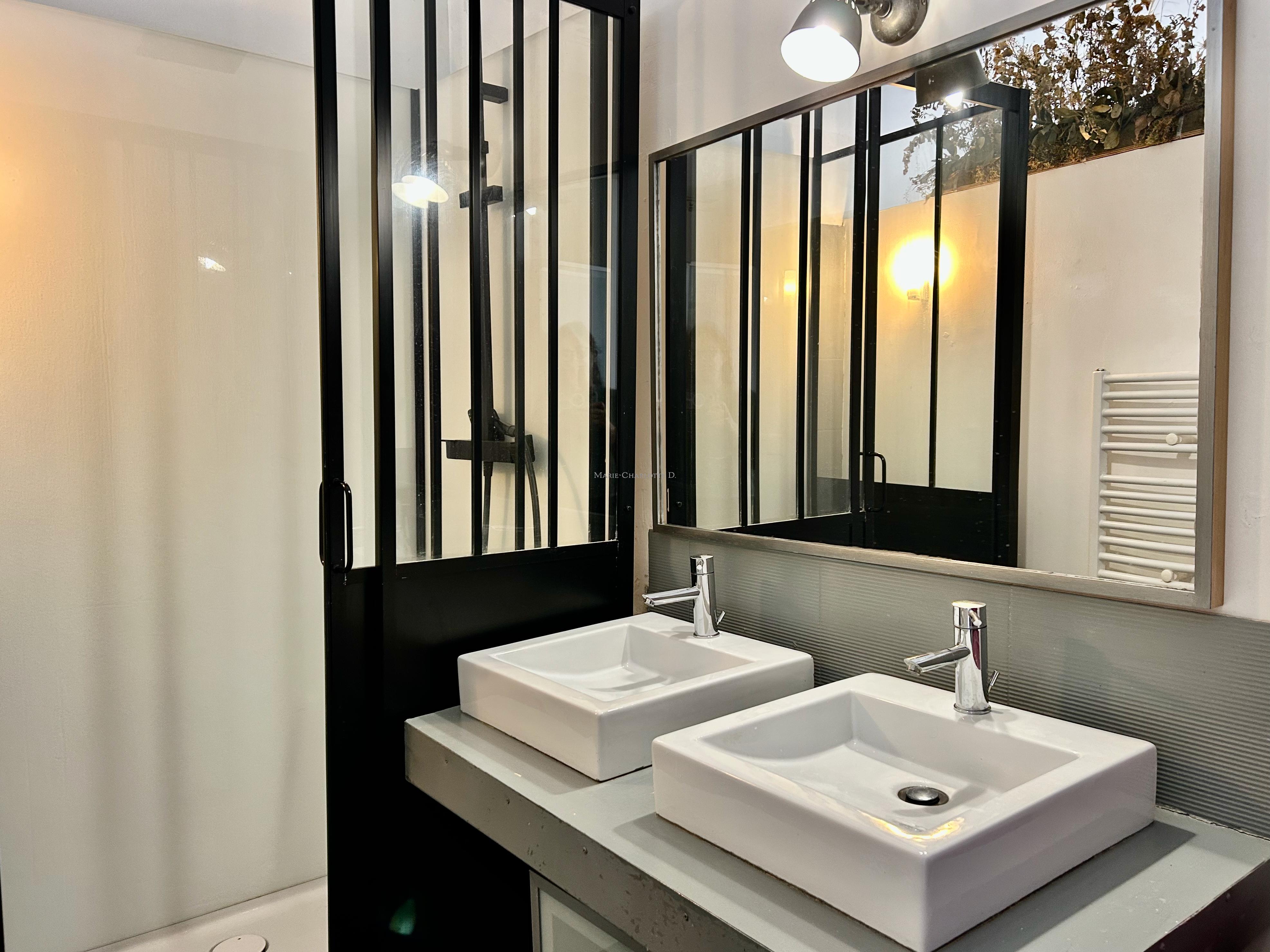 Un superbe escalier géométrique mène à l’étage, où se trouvent deux chambres supplémentaires avec une salle d'eau et une magnifique suite parentale comprenant un espace bureau, un dressing et une salle de bain.